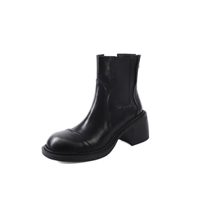 复古简约美拉德棕色牛皮切尔西靴2025冬粗中跟宽松圆头真皮短靴女