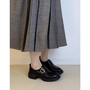 打版中复古真皮黑色厚底圆头小金扣乐福鞋女休闲粗跟小皮鞋单鞋女