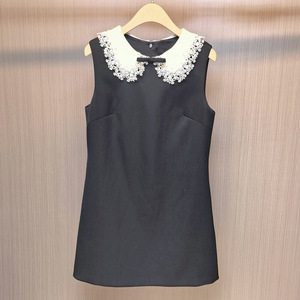 现货深圳南油货源2025年秋季新款娃娃领钉钻黑色背心连衣裙