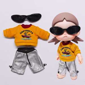 银色外套+黄T+裤子+三角眼镜【4件套】