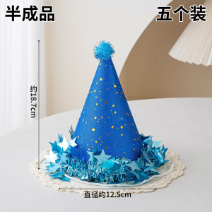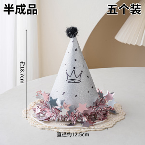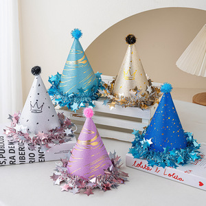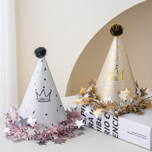 网红流金梦幻毛球生日帽成人宝宝周岁节日蛋糕珠光尖角帽绒球帽子