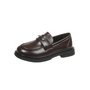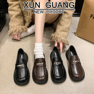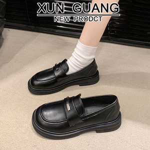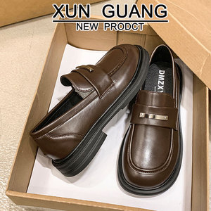 真皮厚底乐福鞋女一脚蹬秋季单鞋2025新款百搭粗跟英伦风小皮鞋子