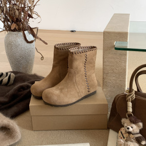 MARCO&JOYCE法式复古低跟圆头短靴女2025秋冬季新款高级感绒面靴