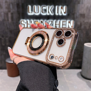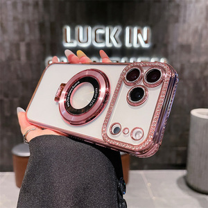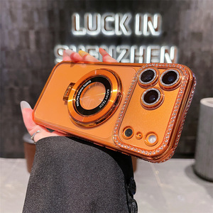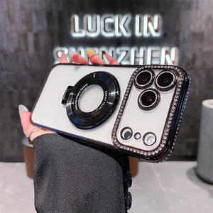 电镀水钻适用iPhone17PROMAX手机壳磁吸支架苹果16防摔带镜头膜15