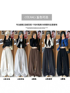 琥珀流光风抽绳弯刀裤女秋季2025新款高腰窄版阔腿裤宽松休闲卫裤