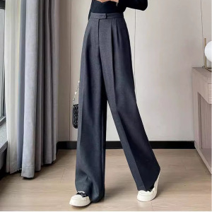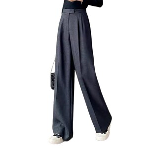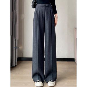 现货厂家批发 毛呢阔腿裤女新款加绒加厚小个子高腰垂感西装裤 女