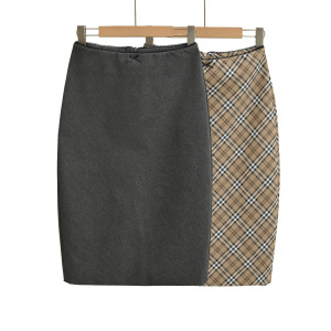 AY728-25秋季新款 美式蕾丝腰头蝴蝶结装饰格纹中长包臀裙半身裙