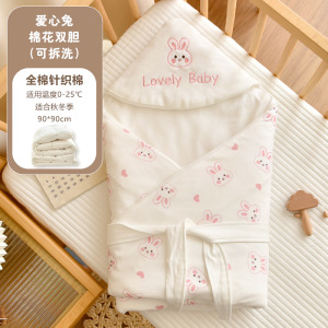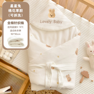新生婴儿纯棉抱被宝宝秋冬加厚可拆棉花包被产房外出防风保暖襁褓
