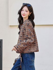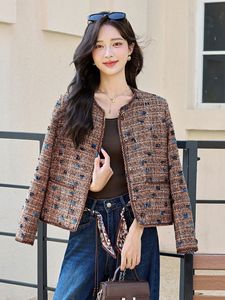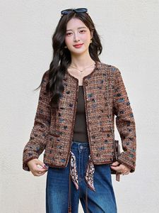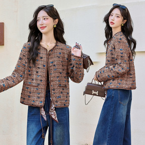 2025秋冬季新款女装气质时尚粗花呢编织小香风女式毛呢外套YJ8627