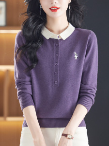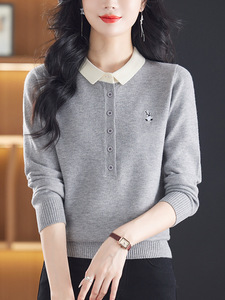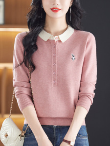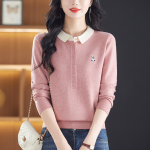 娃娃领针织打底衫女秋装2025年新款时尚洋气内搭翻领上衣妈妈毛衣