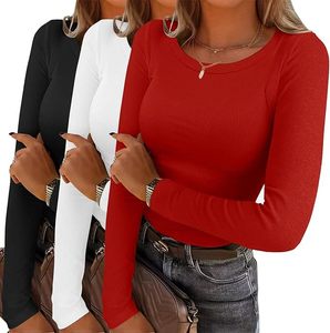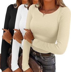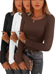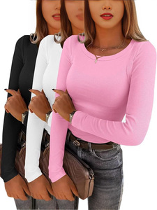 2026欧美跨境组合女士长袖罗纹针织圆领T恤修身休闲秋季基本款
