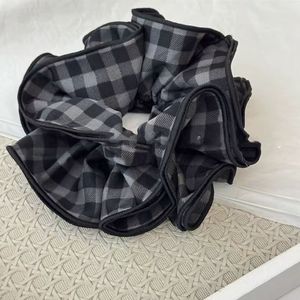 赵露思同款暗红色格纹大肠发圈韩系复古高级感四层锁边发绳头饰女