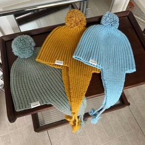 可爱毛球针织护耳帽韩版秋冬保暖毛线帽防寒飞行帽大头围雷锋帽子