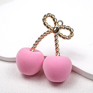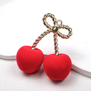 秋冬植绒樱桃苹果吊坠水果吊孔挂件包挂项链亚克力diy饰品配件