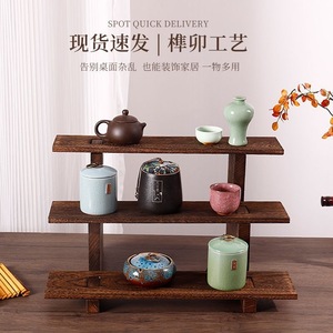 桌上置物架茶具展示架小型实木紫砂壶摆放茶叶茶具杯博古架置物架