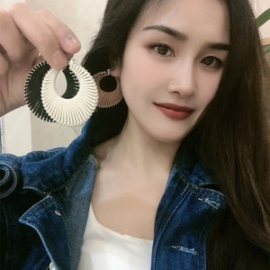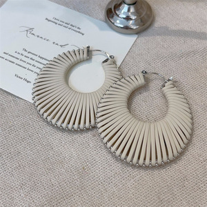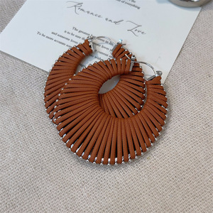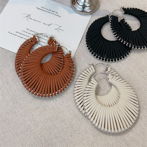 港风秋冬新款PU皮编织耳圈高级感法式耳环复古椭圆形潮流夸张耳饰