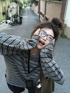 韩系慵懒设计感条纹复古长袖卫衣女秋季小众休闲圆领宽松套头上衣