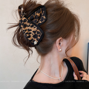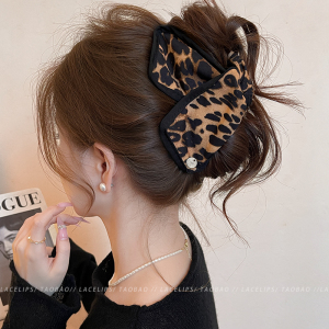 法式优雅豹纹三角抓夹女2025新款高级感后脑勺盘发鲨鱼夹气质发饰