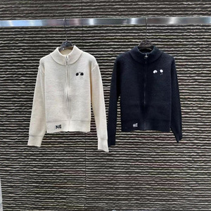 2025秋冬新款重工刺绣半高领拉链针织开衫减龄宽松百搭外套