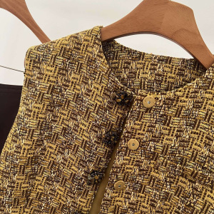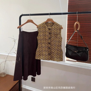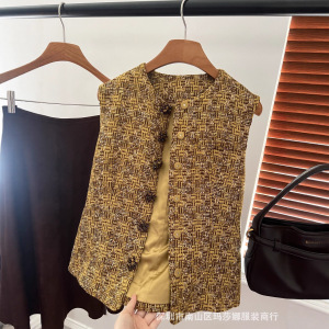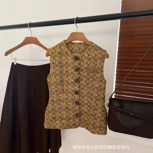 25早秋新款小香风优雅女人粗花呢无袖格纹修身显瘦百搭马甲上衣女
