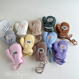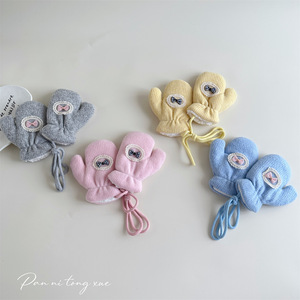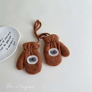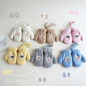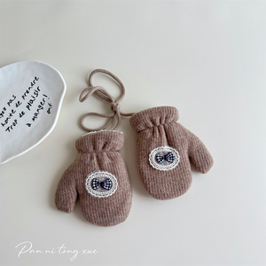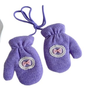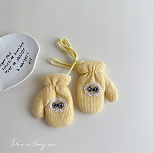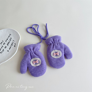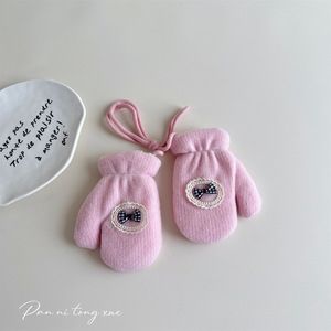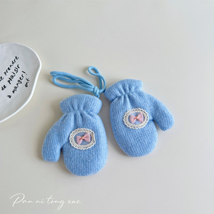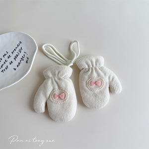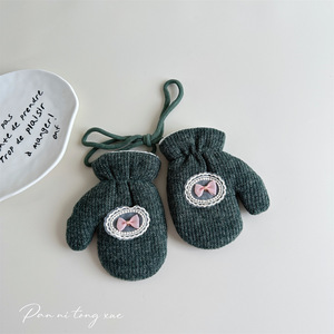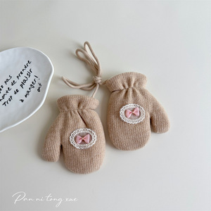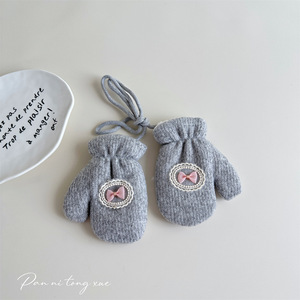 儿童ins新款蕾丝蝴蝶结包指手套秋冬季宝宝挂脖加厚保暖手套