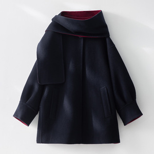 轻盈保暖大衣女双面羊绒围巾款宽松显瘦灯笼袖秋冬季毛呢外套羊毛