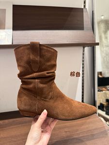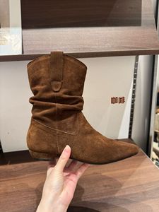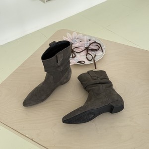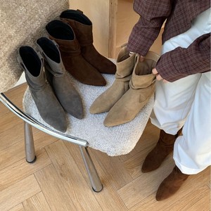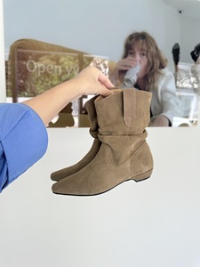牛皮版~ 跟高3cm秋冬韩版粗跟增高堆堆中筒短靴女尖头V口瘦瘦靴女