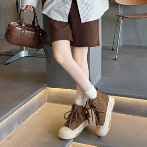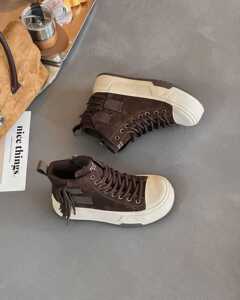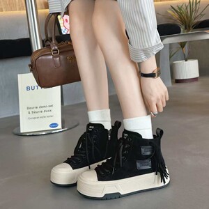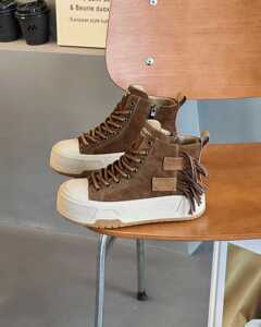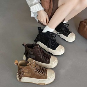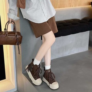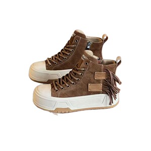 真皮厚底高帮鞋女2025秋季新款复古流苏松糕板鞋英伦风运动休闲鞋