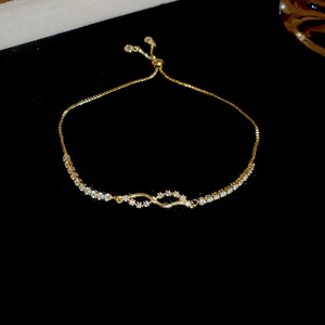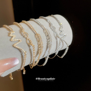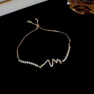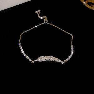 镶锆石羽毛心率可抽拉式手链小众轻奢设计手环时尚百搭气质手饰女