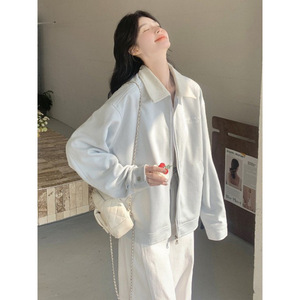 蓝色翻领休闲外套女2025春秋新款流行爆款超火小个子百搭夹克上衣
