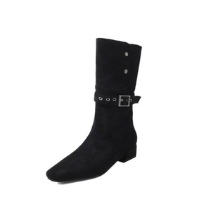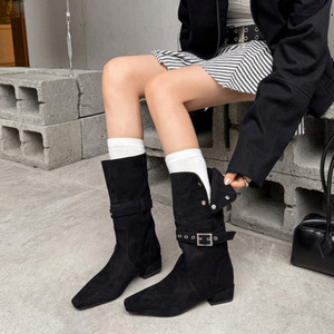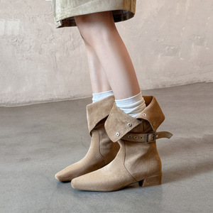 牛皮版~美拉德牛仔西部靴女2025新款百搭两穿粗跟堆堆靴中筒靴