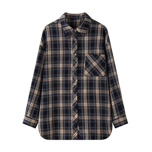 娅可家经典格子衬衫女春秋复古港味气质宽松休闲通勤别致衬衣上衣