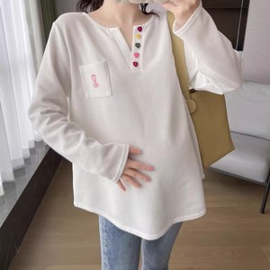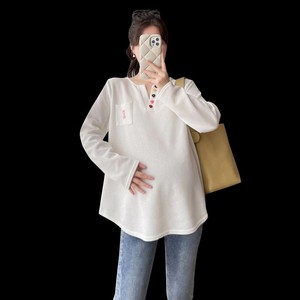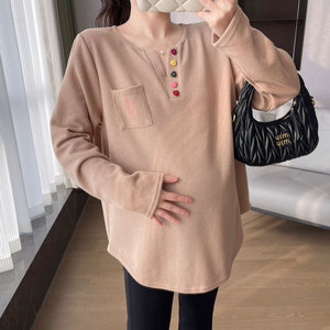 孕妇装秋冬T恤打底衫卫衣春秋新款休闲V领上衣时尚韩版宽松长袖T