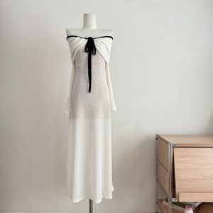 香邂白茶 浪漫氛围度假感设计感喇叭袖长款连衣裙
