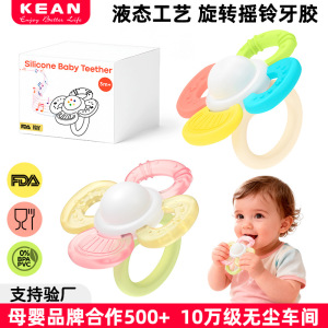 新品牙胶旋转风车宝宝摇铃玩具液态啃咬可水煮牙胶婴儿食品级咬胶