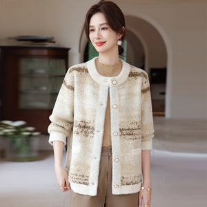 妈妈装春秋装针织开衫外套2025新款中老年人女装秋季毛衣外搭上衣