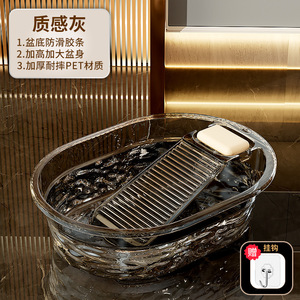 质感灰大号自带搓衣板+皂盒送防滑垫+挂钩