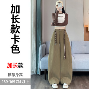 实拍2025秋冬新款弯刀工装裤休闲阔腿裤女高腰直筒运动裤女