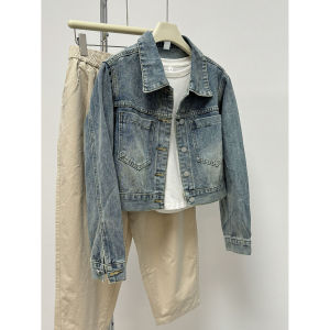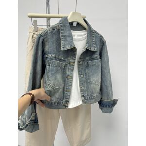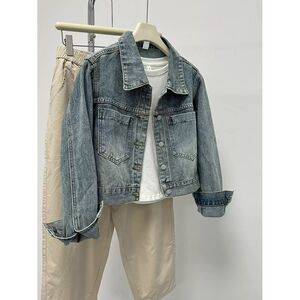 2025新款秋装美式复古蓝短款牛仔外套口袋宽松百搭休闲夹克上衣