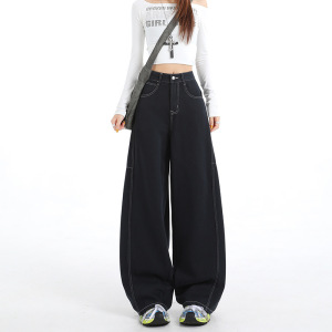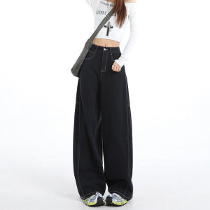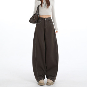 美拉德弯刀阔腿牛仔裤女2025秋季新款设计感宽松显瘦百搭镰刀裤子
