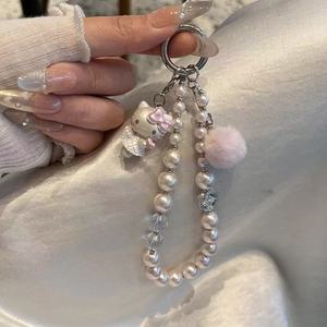 秋冬粉色毛球串珠原创kt猫手机挂绳手机壳短挂链手提珍珠链条2025