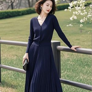 轻奢2025新款外穿针织衫成熟垂感中长款半身裙套装纯色印染超短裙