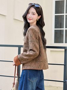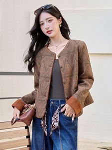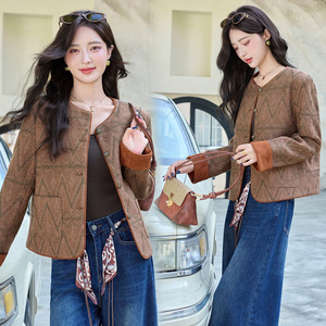 2025秋季新款女装时尚刺绣圆领上衣百搭小香风女式毛呢外套YJ8632