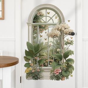 3D假窗植物背景墙可移除自粘墙贴亚马逊热销大树叶子墙贴画 69205