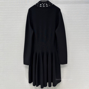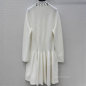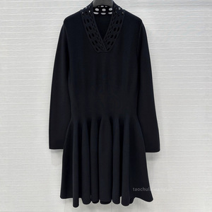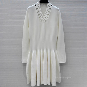 纯色镂空V领针织连衣裙 气质优雅风收腰显瘦长袖短裙早秋 BL82913