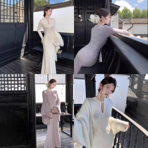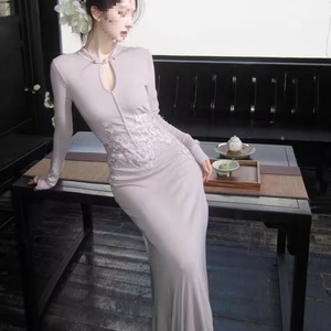 从一时刻瓷生花新中式复古盘扣旗袍修身连衣裙搭软糯针织开衫