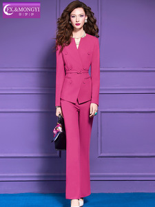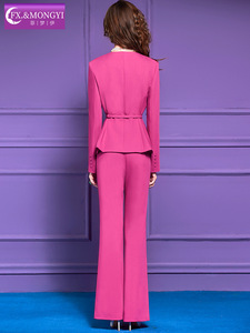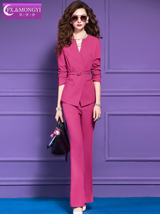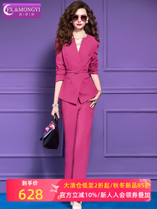 菲梦伊玫红色西装套装女秋季优雅端庄收腰西服上衣OL职业裤两件套