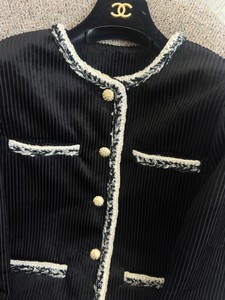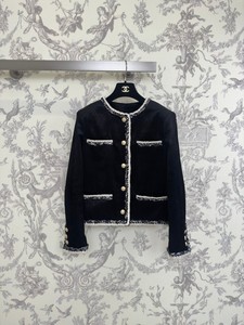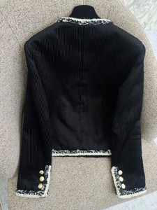 深圳南油高端女装欧美原单小香风撞色镶边金扣气质优雅羊毛呢外套