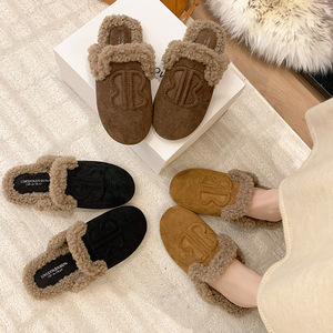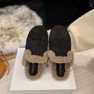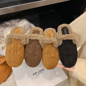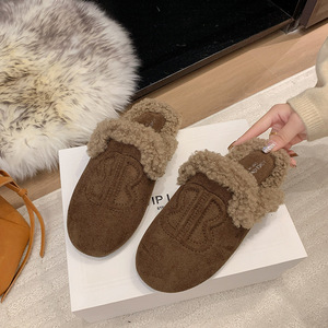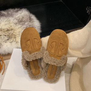 软皮版包头半拖鞋女外穿平底穆勒鞋2025年秋季新款一脚蹬懒人鞋子