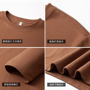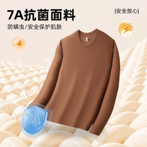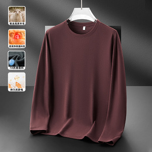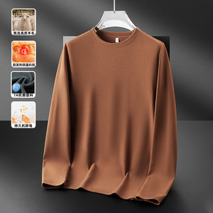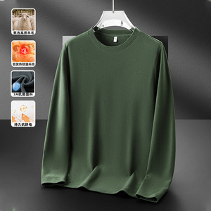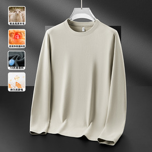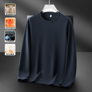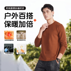 德绒圆领打底衫男秋冬加绒加厚上衣莱赛尔绵羊毛内搭保暖卫衣T恤
